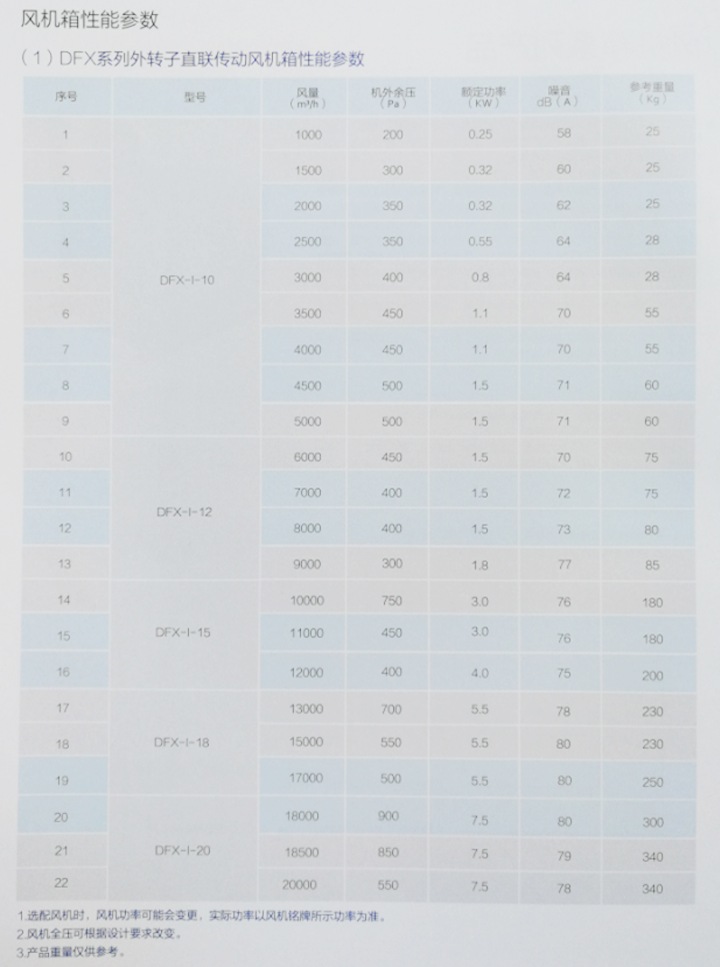 1.2.為適應不同場所噪聲的要求,風機均可配不同長度的消聲器,也可將風機消聲型箱體加厚,使風機噪聲更低。