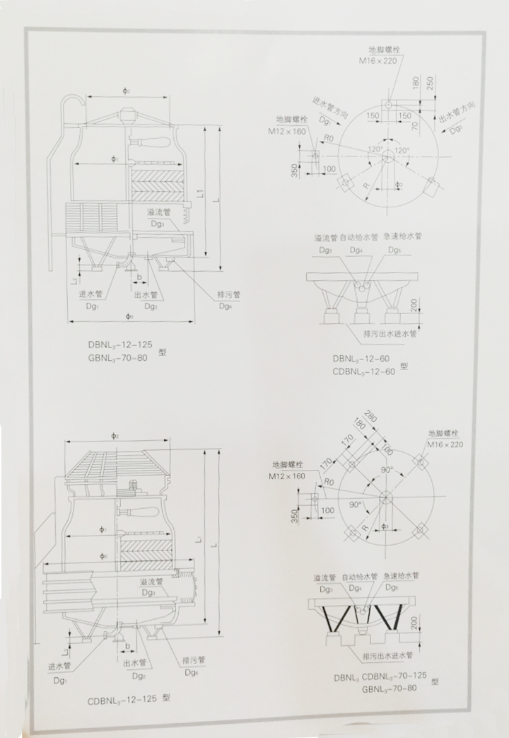 當用戶需在冷卻塔下塔體內直接吸水時,需安裝“自動給水管”,“急速給水管”,“排污管”,訂貨時需特別提出,價格表內不包括這部分價格。