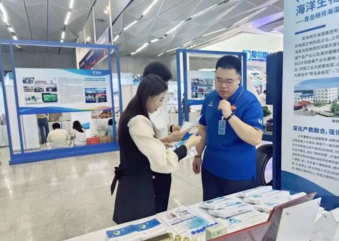 在青島西海岸新區總工會明月海藻集團展位,打破國外壟斷、全球第二家能夠批量生產的組織工程材料,突破生產壁壘實現產業化的巖藻多糖,解決了卡脖子關鍵技術、號稱“神奇的中國布”的海藻酸鹽醫用敷料,引起了前來觀展的領導、專家和市民的關注,明月海藻通過全員創新取得的成果以及“一棵小海藻做成一個大健康產業”的創新發展模式得到了大家的高度評價。